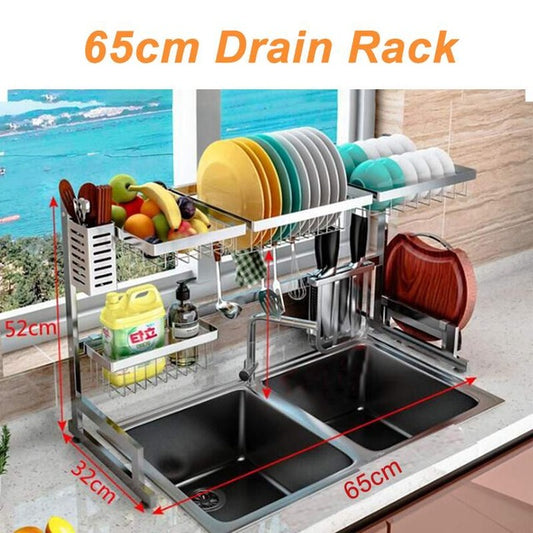 Stainless Steel Kitchen Dish Rack U Shape Sink Drain Rack 2 Tier Dish Organizer Shelf Storage Holder 65/85cm