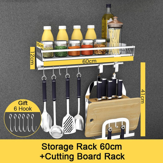Stainless Steel Kitchen Storage Rack Holder Free Nail Wall Hanging Seasoning Bottles Storage Rack Shelf Kitchen Organizer Tools