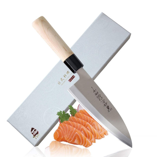 TUO CUTLERY Deba knife - Japanese HC Stainless Steel Sashimi Sushi Kitchen Knife - Non-slip Ergonomic White Handle - 6.5"