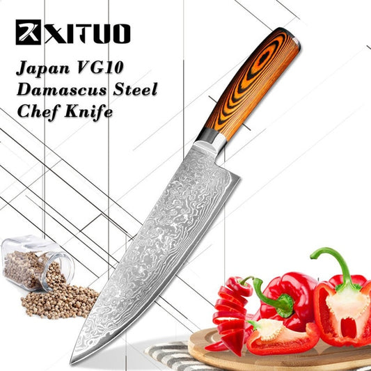 XITUO Kitchen Chef Knife Set VG10 Damascus Steel 67-story Slices Nakiri Kiritsuke Sushi Knife Bone Japanese Knife Cooking Tools