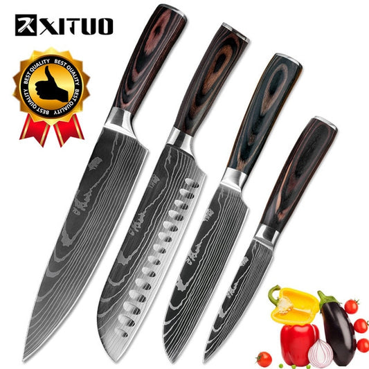 XITUO Kitchen knife 4pcs set Multi Cooking Tool stainless steel Durable chef knife Dining & Bar Unique special design knife set