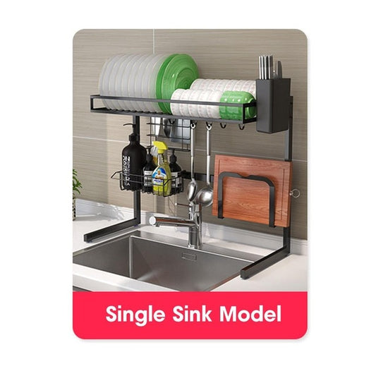 65/85cm Bowl Dish Dry Rack Stainless Steel Over Sink Kitchen Organizer Storage Shelf Holder Utensils Storage Organizer in Black