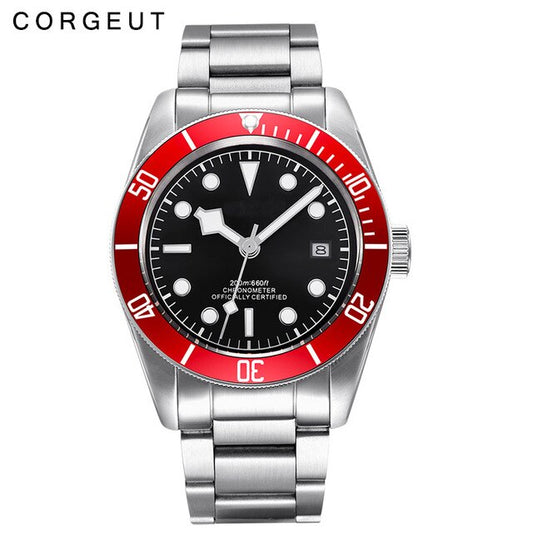 Corgeut Luxury Brand Schwarz Bay Men Automatic Mechanical Watch Military Sport Swim Clock Leather Mechanical Wrist Watches 2010C