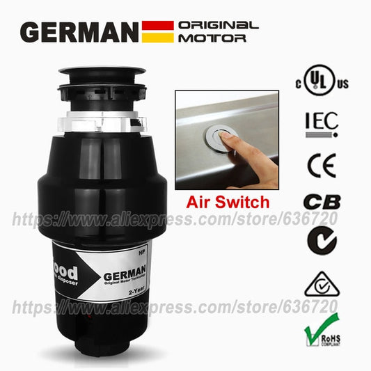 German 850W motor Technology Fast-and-easy mount kitchen Food Waste Disposers + Air Switch , 3/4 HP Household Garbage Disposer