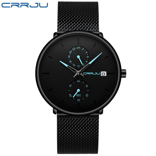 Men Watch CRRJU Top Brand Waterproof Quartz Wrist Watches Mens Stainless Steel Sports Male Clock Date Relogio Masculino
