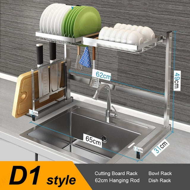 Silver/Black Kitchen Sink Rack Stainless Steel Sink Drain Rack Drying Storage Holder 2 Layer Kitchen Dish Shelf Organizer